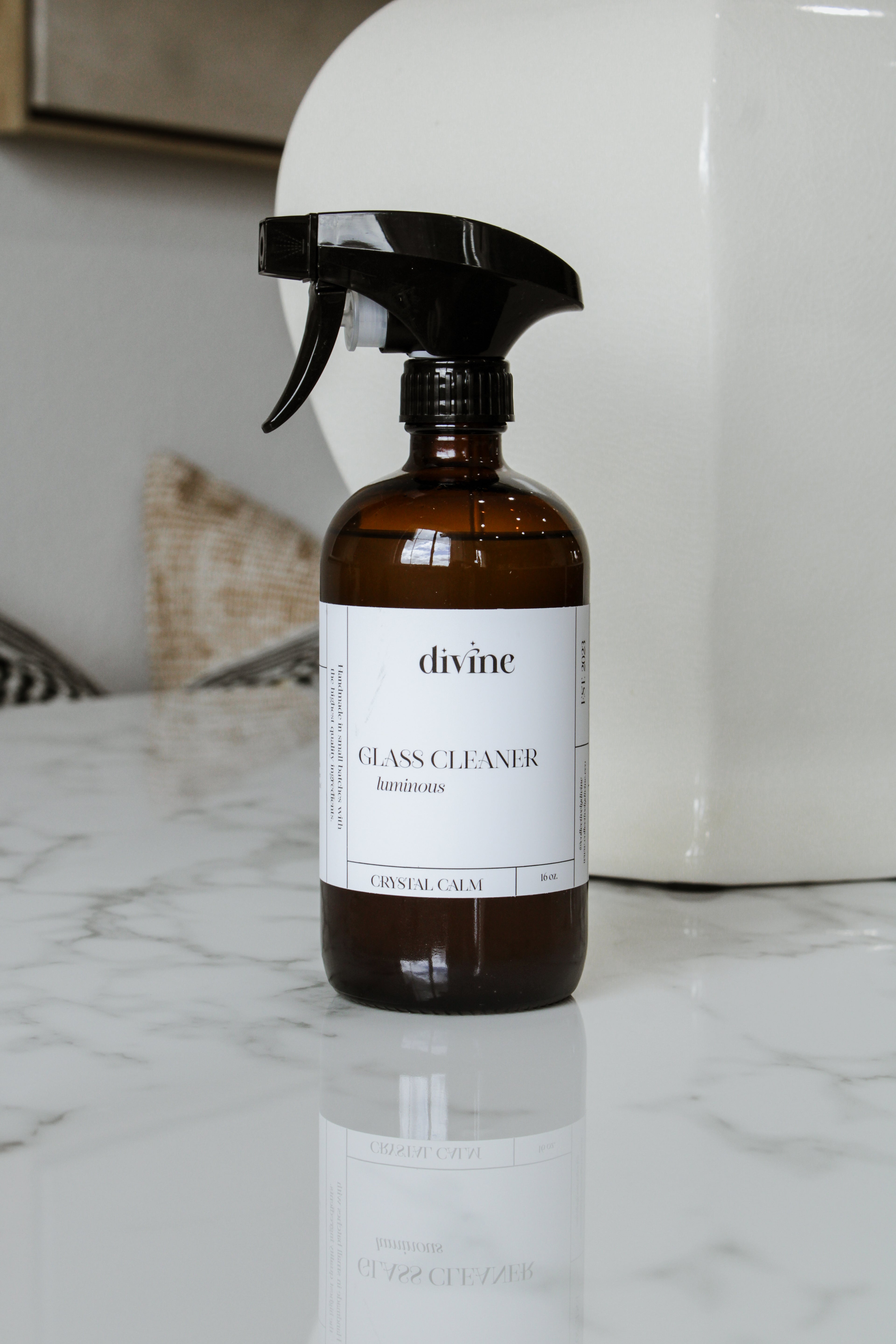 Our Crystal Calm, Luminous Glass Cleaner effortlessly removes film and polishes windows, glass doors, and mirrors to a streak-free shine while helping to repel dust. Made with distilled water, organic grape alcohol (no toxic rubbing alcohol), organic vinegar and infused with a blend of french lavender & eucalyptus essential oils, this biodegradable, eco-friendly formula delivers a powerful clean without the use of toxic chemicals.